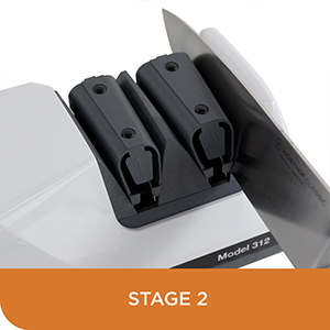 STAGE 2: Ultra-hones the edge using advanced micron size 100% diamond abrasives to complete the second bevel